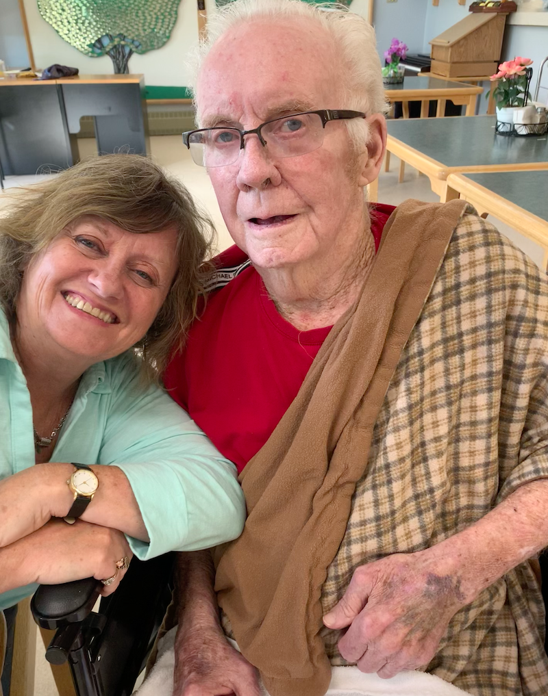 When we returned my dad home to the nursing from the hospital, he had one good last day where he was up and enjoyed a musical performance. This is our last photo together.